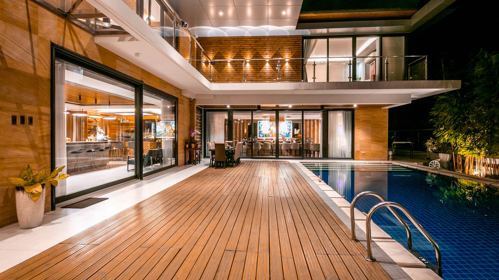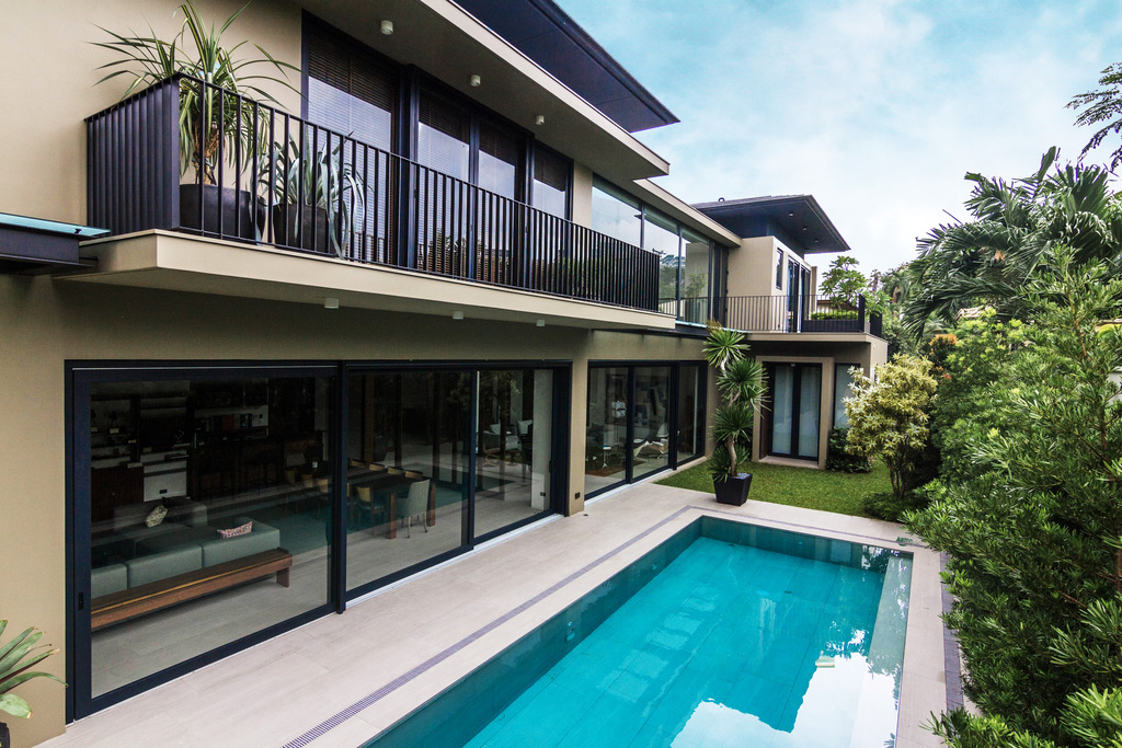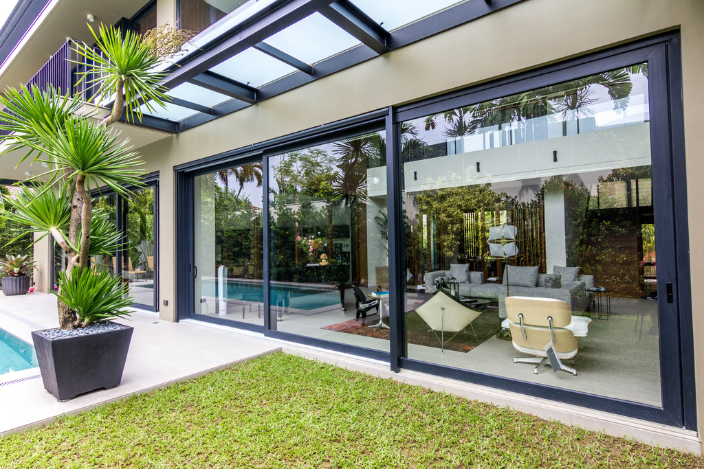 Velika staklena klizna vrata od poda do stropa stvaraju prozračan, ugodan ambijent ispunjen svjetlošću, osiguravajući osjećaj opuštanja. Tanke,